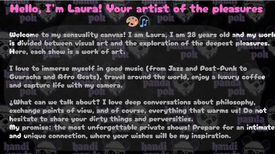 I'm Laura, I turn 29 on November 4, I study from Monday to Friday to be an art teacher and I really like anal sex.